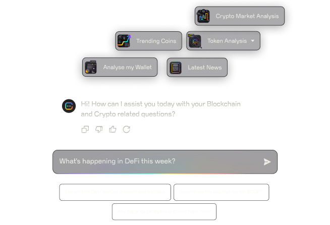 A crypto AI chatbot is an AI-powered assistant specialized in blockchain, Web3, and cryptocurrency topics. Instead of generic answers, it provides contextual responses about tokens, protocols, DeFi, NFTs, DAOs, and more. The ChainGPT crypto AI chatbot is tuned specifically for this domain.
